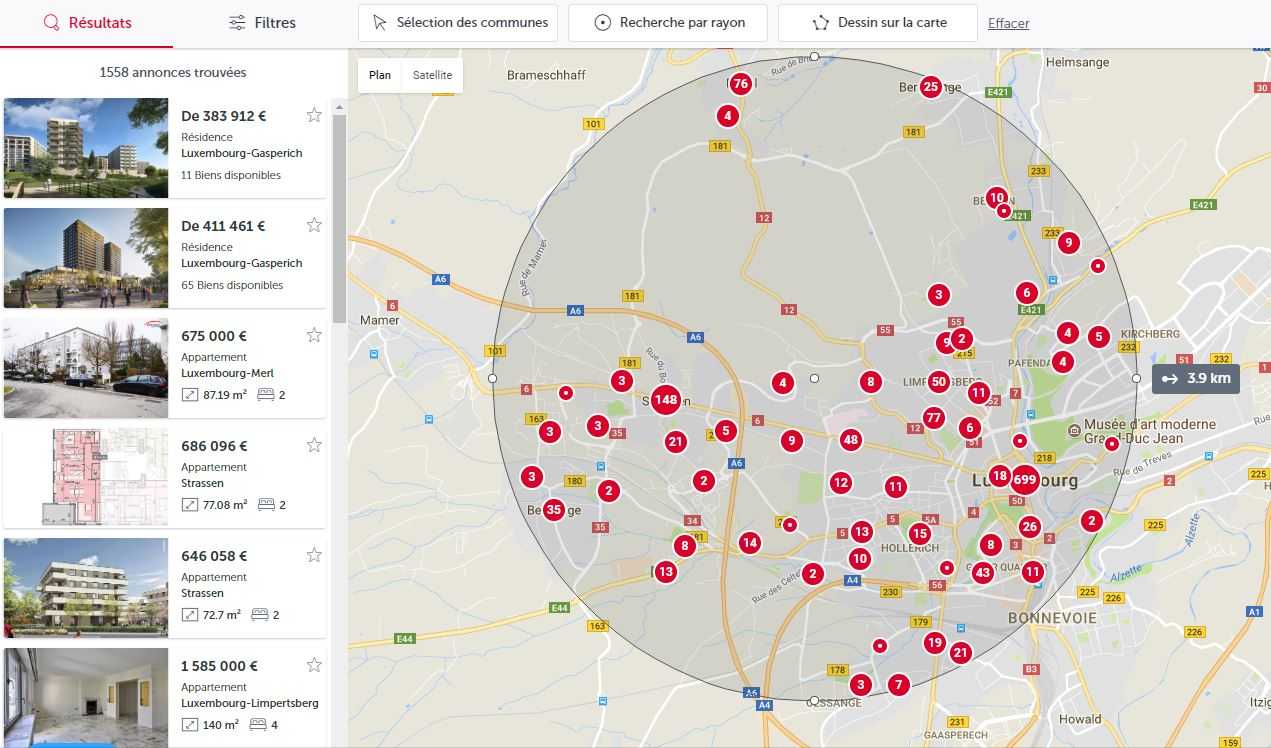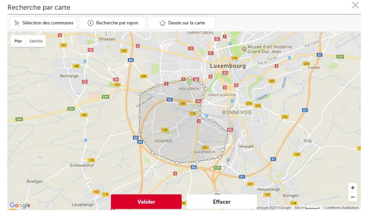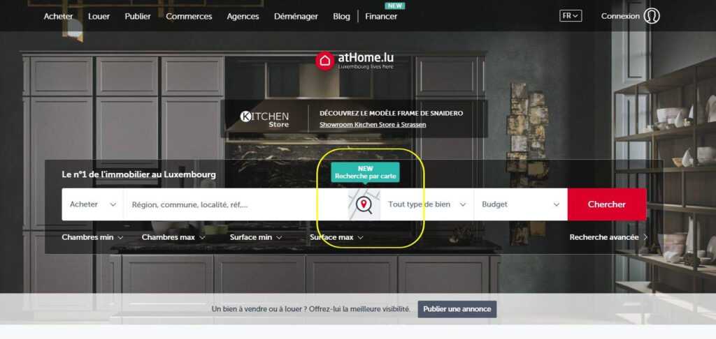 Discover now the "map search" functionality of atHome.lu. This allows you to target the desired search area more precisely.