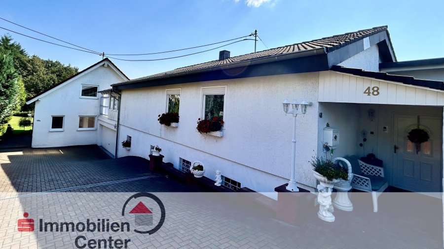 Zwei Häuser - viele Möglichkeiten! Hier warten gleich zwei Häuser auf neue Eigentümer! Die bestens gepflegten Immobilien bieten mehrere Wohnoptionen. Bestens geeignet als Mehrgenerationenhäuser oder Wohngemeinschaften. Ebenfalls ideal zur Eigennutzung für die Familie mit Kindern und Vermietung des jeweils anderen Hauses als Finanzierungshilfe. Im Wohnhaus 2 befinden sich zwei Wohnungen (1 x ca. 84 m², 1x ca. 75 m²), es kann aber auch als Einfamilienhaus genutzt werden. Das Wohnhaus 1 mit ca. 180 m² Wfl. ist eigengenutzt - und eine Freistellung ist kurzfristig nach Absprache möglich, Wohnhaus 2 ist frei! Lage und Grundstück: Leben im Einklang mit der Natur! Absolut ruhige und naturnahe Wohnlage am Ortsrand, unverbaubarer Fernblick auf Wälder und die umliegenden Dörfer! Bäcker und Metzger befinden sich direkt im Ort. Die Stadt Wadern mit allen Geschäften des täglichen Bedarfs, Ärzten, Apotheken und Banken erreichen Sie in nur 5 Autominuten. Die Grundschule befindet sich im Ort, die Kita im Nachbarort. 3036 m² Areal mit großem Garten Bauart und Ausstattung: Haus 1: - Baujahr 1979, stets gut gepflegt und unterhalten - Bungalow - Fertighaus der Firma Streif auf massivem Keller - Ölzentralheizung 2004, Kaminofen - Klimaanlage in einigen Wohnräumen - Kunststofffenster und Holzfenster mit Isolierglas - neuwertige Einbauküche - Doppelgarage, Carport - Wintergarten mit über 60 m², Balkon - Keller gefliest - Freistellung kurzfristig nach Absprache Ein Raumluftgutachten liegt vor, eine gesundheitliche Relevanz der bei den Messungen am 07.08.2025 überprüften fertighaustypischen Schad- oder Geruchsstoffe wurde nicht nachgewiesen. In das komplette Gutachten kann gerne bei einer Besichtigung eingesehen werden. Haus 2: - Baujahr 1992 - massiv, freistehend, unterkellert, Satteldach - Ölzentralheizung, Kaminanschluss - Kunststofffenster mit Isolierglas - Keller gefliest - Bio Kläranlage - Einbauküche, Terrasse, Rollläden Aufteilung: Haus 1: UG: Vorrat, Waschküche, große Werkstatt, Partyraum/Abstellraum, Vorrat, Werkstatt EG: Windfang, Flur, Gästezimmer mit Ankleide, großes Bad, großzügiger Wohn-Essbereich mit Kamin und separatem Lesezimmer, Wintergarten, Balkon, Küche, Abstellraum mit Gäste-WC, Schlafzimmer Haus 2: UG: Waschküche, Heizung, Vorrat, großer Partyraum mit Gartenzugang EG: Flur, großer Wohn-Essbereich mit Kaminanschluss und Terrasse, Kochküche, Bad, 2 Zimmer DG: Flur, großes Schlafzimmer, Wohnbereich mit Küchenecke, Balkon, Bad, 2 Zimmer Machen Sie sich selbst ein Bild von dieser einzigartigen Gelegenheit und vereinbaren Sie noch heute einen Besichtigungstermin! Individuelle Ausstattungsmerkmale: - Rollläden