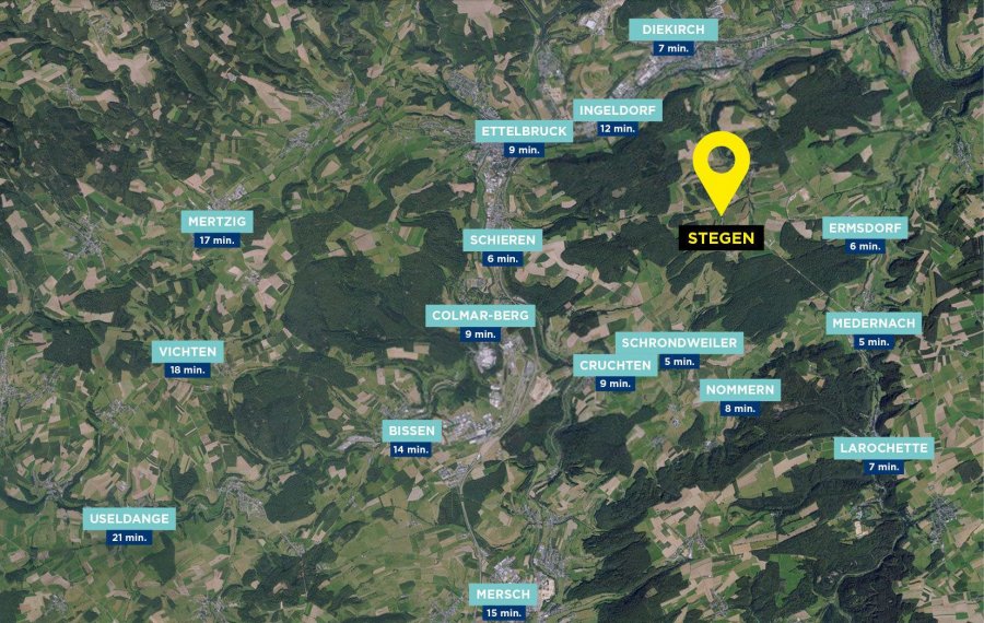 Maisons unifamiliales à vendre avec ou sans contrat de construction dans le nouveau lotissement "Thiergart" à Stegen. SITUATION Stegen est un petit village calme à l'est du Luxembourg qui appartient à la commune de la Vallée de l'Ernz dans le canton de Diekirch. La commune a été créée en 2012 par la fusion des communes d'Ermsdorf et de Medernach. Elle se compose des localités d'Ermsdorf, Eppeldorf, Folkendange, Keiwelbach, Medernach, Stegen et Savelborn ainsi que d'une quinzaine de fermes et de maisons individuelles. La commune dispose d'une salle de sport à Medernach et d'un centre de football avec deux terrains synthétiques, nouvellement aménagés au lieu-dit «Bloen Eck» à Stegen. On y trouve également un café-restaurant bien connu du même nom. L'église Saint-Barthélemy au centre de Stegen a été déclarée monument nationale en 2021. Stegen n'est qu'à 10 minutes en voiture du centre d'Ettelbruck. On y trouve une multitude de restaurants, de magasins et d'écoles ainsi que le Centre Hospitalier du Nord. À Ingeldorf (10 minutes en voiture) sont plusieurs grands supermarchés, des magasins d'électroménager et de meubles ainsi que divers ateliers de voitures. À Diekirch (15 minutes en voiture), vous trouverez une grande variété de restaurants et cafés ainsi qu'un cinéma. TRANSPORTS L'arrêt de bus «Bloen Eck» se trouve à proximité immédiate et est desservi par les lignes de bus 101, 105, 409, 504 et 507. Ligne 101: Limpertsberg/LTC ? Heffingen ? Ettelbruck/LT Ligne 105: Junglinster ? Ettelbruck Ligne 409: Mersch ? Larochette ? Stegen Ligne 504: Ettelbruck ? Haller Ligne 507: Diekirch ? Ettelbruck ? Grevenmacher Les lignes 101 et 507 desservent en outre les lycées de Luxembourg, Ettelbruck et Diekirch pendant la période scolaire. La gare la plus proche est à Ettelbruck (15 minutes en voiture) et est desservie par la ligne 10 du réseau des Chemins de fer luxembourgeois (CFL), qui relie la ville de Luxembourg à Troisvierges. La gare fait actuellement l'objet d'une rénovation complète. Un parking relais « Park & Ride » de plus de 400 places et une nouvelle gare routière font partie du projet. Luxembourg-Gare est accessible en 30 minutes en train. Grâce à l'accès proche à l'autoroute A7 via Ingeldorf, Kirchberg est à uniquement 30 minutes en voiture. Les villes de Mersch et de Esch-sur-Alzette sont à 15 respectivement 50 minutes en voiture. ECOLES Le bâtiment scolaire d'Ermsdorf accueille les enfants du cycle 1 qui habitent dans les localités d'Ermsdorf, Eppeldorf, Stegen, Folkendange ou Keiwelbach. L'infrastructure scolaire de Medernach, qui comprend trois bâtiments, dont deux sont destinés à l'enseignement précoce et préscolaire et un à l'enseignement fondamental des cycles 2.1. à 4.2., accueille environ 250 élèves. La commune de la Vallée de l'Ernz fait actuellement construire un nouveau complexe scolaire pour l'ensemble de la commune à Medernach, qui comprend également une nouvelle maison relais ainsi qu'un nouveau gymnase. Les travaux devraient être terminés pour l'année scolaire 2021/2022. Dans les environs, il y a plusieurs lycées à Ettelbruck, Diekirch ainsi qu'à Luxembourg-ville, tous desservis par les transports en commun et donc facilement accessibles. A Stegen, il y a également une école d'équitation qui propose des cours d'équitation professionnels et organise des tournois. DISTANCES Gare Ettelbruck: 8,5 km Gare Diekirch: 7,9 km Centre Hospitalier du Nord: 9,8 km Bâtiment scolaire Medernach: 4,0 km Bâtiment scolaire Ermsdorf: 4,5 km Gymnase Medernach: 3,9 km Cinéma «Scala» Diekirch: 8,3 km Ville de Luxembourg: 41,6 km Aéroport: 37,5 km Réf. agence : STEGEN 2804 LK