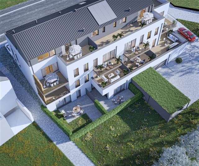 Appartement 0.2 Situé au rez, niveau 0, de la résidence, au niveau du terrain arrière de la résidence, cet appartement tout confort offre une superficie brute de plus de 73 m² et bénéficie d'un agencement moderne et fonctionnel. Il se compose d'un spacieux séjour lumineux avec coin cuisine équipée (comprise dans le prix), d'une chambre à coucher, d'une salle de douche, d'une réserve/ buanderie, d'un WC séparé ainsi que d'un hall d'entrée. L'espace de vie s'ouvre sur une agréable terrasse de plus de 25 m² orientée plein ouest, idéale pour profiter de l'ensoleillement fin d'après-midi et de journée. L'appartement bénéficie d'une excellente performance énergétique (classe A) et dispose de sa propre chaudière individuelle à condensation au gaz de ville (chauffage sol), assurant la production d'eau chaude et le chauffage. Le bien offre un confort moderne et des équipements de qualité : ·cuisine équipée, ·chauffage par le sol, ·ventilation double flux avec récupération de chaleur, ·châssis triple vitrage, avec film solaire protecteur. Une cave privative ainsi qu'un emplacement de parking intérieur en sous-sol, un emplacement de parking car-port et/ou un emplacement de parking extérieur sont disponibles en supplément. Vente réalisée sous le régime TVA et sous la loi Breyne, offrant une sécurité juridique et financière à l'acquéreur.