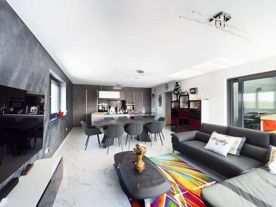 A vendre Magnifique Penthouse de 133 m2 avec accès privatif par ascenseur disposant de belles 2 terrasses, une à l'est de 29,18 m2 et la deuxième à l'ouest de 54,36 m2 avec pergola. Cuisine haut de gamme entièrement équipée avec îlot central ouverte sur une grande pièce de vie pour un total de 48,5 m2. 3 belles chambres à coucher, dont une avec salle de bains, baignoire balnéo privative Salle de douche avec WC séparé, WC séparé, Pour compléter le bien: Cave privative 2 emplacements intérieur. Buanderie commune, local vélo et poubelles. Caractéristiques techniques : triple vitrage, volets électriques, vidéophone, chauffage au sol, VMC, climatisation. Vue dégagée Clôture des travaux et première occupation du Penthouse en 2020. Commission d'agence à charge des vendeurs. Contact: Sonia : 661 39 89 00 Pascal: 661 266 7125 mail: info@passion-immo.lu