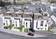 Appartement B2 Appartement d'une surface de +ou- 99m2 situé au rez-de-Chaussée avec une terrasse de +ou- 6.41m2 et un jardin privatif de +ou- 100m2. L'appartement dispose de deux chambres à coucher de 15.02m2 et 10.93m2, une salle de bains, un dressing, un Wc séparé et une cave privative. Vous pourrez acquérir un emplacement intérieur au prix de 30.000,00€ ou un emplacement extérieur au prix de 15.000,00€. Le projet comprend 6 nouvelles résidences à toitures plates de style contemporain dans une rue calme et sans issue dans la ville de Tétange. Les 6 résidences regroupent 16 logements en tout. 4 Résidences ont chacune 2 appartements et 1 penthouse sur deux niveaux par bâtiment, le sous-sol est commun aux 4 bâtiments. Les 4 résidences comprennent 24 emplacements intérieurs et 2 emplacements extérieurs. Les 2 autres bâtiments ont 2 duplex chacun avec un sous-sol séparé pour les deux bâtiments qui disposent de 4 caves et de 4 emplacements intérieurs doubles. Les 4 duplex auront des entrées complètement séparés comme dans une maison. Chaque appartement dispose d'une cave privé. Les appartements sont spacieux et lumineux disposant de 2 à 4 chambres à coucher avec une voir 2 terrasses par appartements. Les appartements situés au rez - de - chaussée dispose d'un jardin privé. Chaque détail a été ici pensé afin de proposer aux futurs occupants un confort de vie optimal. Des équipements et matériaux haut de gamme sélectionnés avec le plus grand soin, des espaces extérieurs comme des terrasses et jardins privés pour les appartements au rez-de-chaussée et des terrasses avec une vue dégagée pour les biens aux étages supérieurs .
