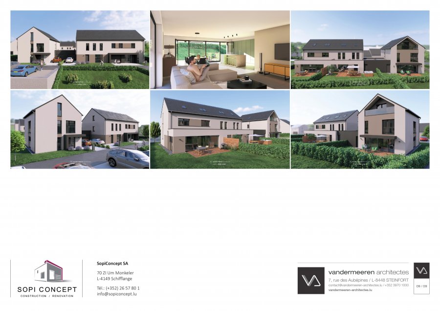SOPICONCEPT SA vous propose à Beidweiler, commune de Junglinster, dans un nouveau lotissement "UEWENT TERREN-RETSCHGRIECHT" cette magnifique maison à basse énergie, libre des trois côtés sur un beau et grand terrain de 4.15 ares avec une surface habitable de +/- 153.27 m2. La maison vous offre au rez-de-chaussée un vaste séjour, salle à manger avec une cuisine ouverte et accès direct vers une grande terrasse et jardin, un WC séparé et un débarras. L'étage est aménagé avec un local technique, chambre parentale, salle de douche ainsi que trois autres chambres. Le garage donne accès direct à l'habitation avec 1 stationnement se trouvant devant le garage. Nous équipons toutes nos maisons avec une pompe à chaleur et d’une façade en laine de roche. Les constructions sont livrées clés en main dans un délai de 14 mois. Les aménagements des alentours comme les entrées à l'immeuble, terrasse, bordures sont comprises. La récupération maximale de 50 000 € de TVA est comprise dans le prix de vente affiché sous condition d'acceptation par le gouvernement. N'hésitez pas à contacter notre service commercial pour plus d'informations. SOPICONCEPT SA : +352 621 26 86 74 ou par mail : vente@sopiconcept.lu Plans et cahier des charges sur simple demande. Les prix sont garantis jusqu'à la remise des clés.
