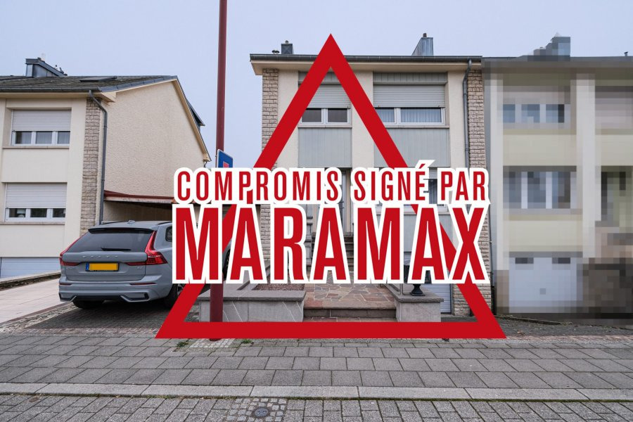 L'agence immobilière MaraMax s.àr.l vous propose en vente cette joli maison, bien située dans une rue calme et agréable à Pétange et implantée sur un terrain de +/- 2a 97ca. Avec une surface totale de +/- 184,16 m2 et une surface habitable de +/- 115,74 m2, la maison se compose comme suit : Rez-de-chaussée : ? Hall d'entrée, ? WC séparé avec lave-mains, ? Living / salle à manger avec feu ouvert et accès terrasse et jardin, ? Cuisine séparé. 1er étage : ? Hall de nuit, ? Chambre à coucher de +/- 13,65 m2, ? Bureau avec placard intégré de +/- 10,02 m2, ? Chambre à coucher de +/- 14,45 m2, ? Salle de douche avec lavabo et armoire mural, WC et fenêtre. Grenier : ? Palier avec fenêtre, ? Grenier de +/- 16,45 m2 avec deux Velux. Sous-sol : ? Hall de cave, ? Garage pour 2 voitures avec porte électrique, ? Buanderie / chaufferie avec accès jardin, ? Cave. Suppléments : Année de construction +/- 1961 Chaudière à gaz de la marque « VIESSMANN Toiture en ardoise : Entretien régulier effectué Nouvelle fenêtre : Remplacement au niveau du sous-sol / Double vitrage en PVC Possibilité de Carport : Installation possible sur le côté de la maison Aménagement des combles : Potentiel pour transformer le grenier en espace habitable Dalles : En béton Extérieur : Terrasse avec marquise Passeport énergétique : G/H Pour tout renseignement complémentaire, contactez-nous au +352 23 65 06 89 / info@maramax.lu