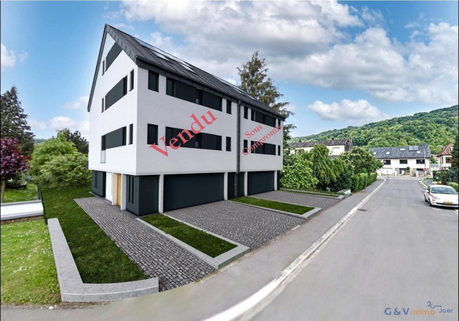 NOUVELLE CONSTRUCTION - MAISON JUMELÉE À VENDRE À STEINHEIM G&V Immo vous propose en vente une maison unifamiliale jumelée, moderne et lumineuse, en future finition libre, située dans un environnement résidentiel calme et verdoyant à Steinheim. La construction de la maison est en cours et sera entièrement achevée. L'acquéreur aura la possibilité de personnaliser les finitions intérieures (revêtements de sol, peintures, équipements sanitaires, etc.) selon ses envies. Cette maison offre un cadre de vie idéal pour les familles recherchant calme et confort, tout en restant proche des commodités. Steinheim est une section de la commune luxembourgeoise de Rosport-Mompach située dans le canton d'Echternach. Steinheim se situe à 5 minutes d'Echternach, non loin de l'autoroute A1 et à 25 minutes du centre-ville de Luxembourg. Descriptif : * Surface utile totale : 280m2 * Surface habitable nette +- 140 m2 * Terrain : Jardin privatif et balcon à l'arrière * Finitions libres (personnalisations selon vos goûts) Disposition : Rez-de-chaussée : * Hall d'entrée * Grand garage pour deux voitures * Espaces caves/rangement 1 er étage : * Vaste espace séjour / cuisine ouvert sur le balcon et jardin * WC séparé 2e étage : * suite parentale avec salle de douche privative * deux chambres à coucher * une salle de bains Dernier étage : * local technique * Grand grenier non aménagé (potentiel d'aménagement futur) De beaux espaces, un balcon et un jardin font de cette maison un endroit agréable à vivre et vous permettront de passer d'agréables moments de détente. Le prix s'entend avec 3% TVA inclus, sous réserve d'acceptation de l'Administration de l'Enregistrement. Délai de finition : 12 mois Annonce non contractuelle Les frais d'agence sont payables par le vendeur. Pour des informations supplémentaires ou pour convenir d'un rendez-vous, vous pouvez contacter Monsieur Manuel Varelas au 621 287 097 ou par email à info@gvimmo.lu G&V Immo, votre partenaire Immobilier depuis 2003.