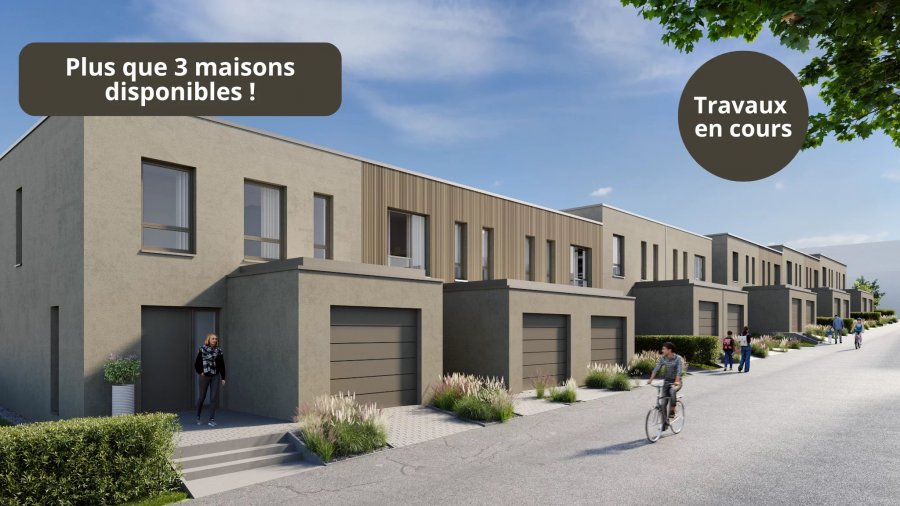TRAVAUX EN COURS ! PLUS QUE 3 MAISONS DISPONIBLES. ____ MAISONS PIVOINE : L'ÉQUILIBRE PARFAIT ENTRE NATURE ET MODERNITÉ Découvrez un nouvel ensemble résidentiel au cœur du quartier de Mathendahl. Alliant haute performance énergétique et esthétisme contemporain, ces maisons ont été conçues pour offrir un confort de vie inégalé. LES ATOUTS DE VOTRE FUTUR LOGEMENT : • Conception architecturale : une signature moderne et épurée développée en collaboration avec le bureau Jim Clemes Associates. • Volumes & lumière : vaste séjour avec cuisine ouverte, optimisé pour une luminosité naturelle maximale. • Espace nuit : 3 chambres spacieuses situées à l’étage pour plus d'intimité. • Commodités complètes : 1 salle de bains, 1 salle de douche, buanderie séparée et garage privé. • Espaces extérieurs : terrasse et jardin privatif pour chaque habitation. QUALITÉ DE CONSTRUCTION & DURABILITÉ : • Certification LENOZ : un habitat destiné à être certifié pour sa durabilité et son excellence environnementale. • Performance énergétique : isolation de pointe et installations techniques garantissant des charges réduites. • Sérénité Tracol Immobilier : la garantie d'une construction pérenne réalisée selon les plus hauts standards de qualité. UN CADRE DE VIE PRIVILÉGIÉ À MATHENDAHL : • Nature en ville : accès immédiat aux parcs, aires de jeux et zones de rencontre du quartier. • Tout à proximité : écoles, commerces et Hôpital Princesse Marie-Astrid accessibles en quelques minutes. • Mobilité connectée : gare de Niederkorn à pied et accès rapide aux grands axes routiers (A13). Vous souhaitez plus d'informations sur ces maisons ? Contactez nous au (+352) 26 58 60 1 ou via contact@tracol.lu .